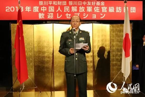 4月17日,日本笹川和平财团在东京举行招待会,欢迎中国人民解放军校级军官团访问日本。笹川和平财团名誉会长、日本财团会长笹川阳平在致辞时说,自己2月份访华时,向中国相关部门建议重启该交流项目,中方对此建议做出了积极回应,并决定在4月份予以启动。“中方此次派出了以慈国巍少将为团长的代表团,说明了我们双方都有意愿通过军官之间的交流推动日中关系进一步发展。”
