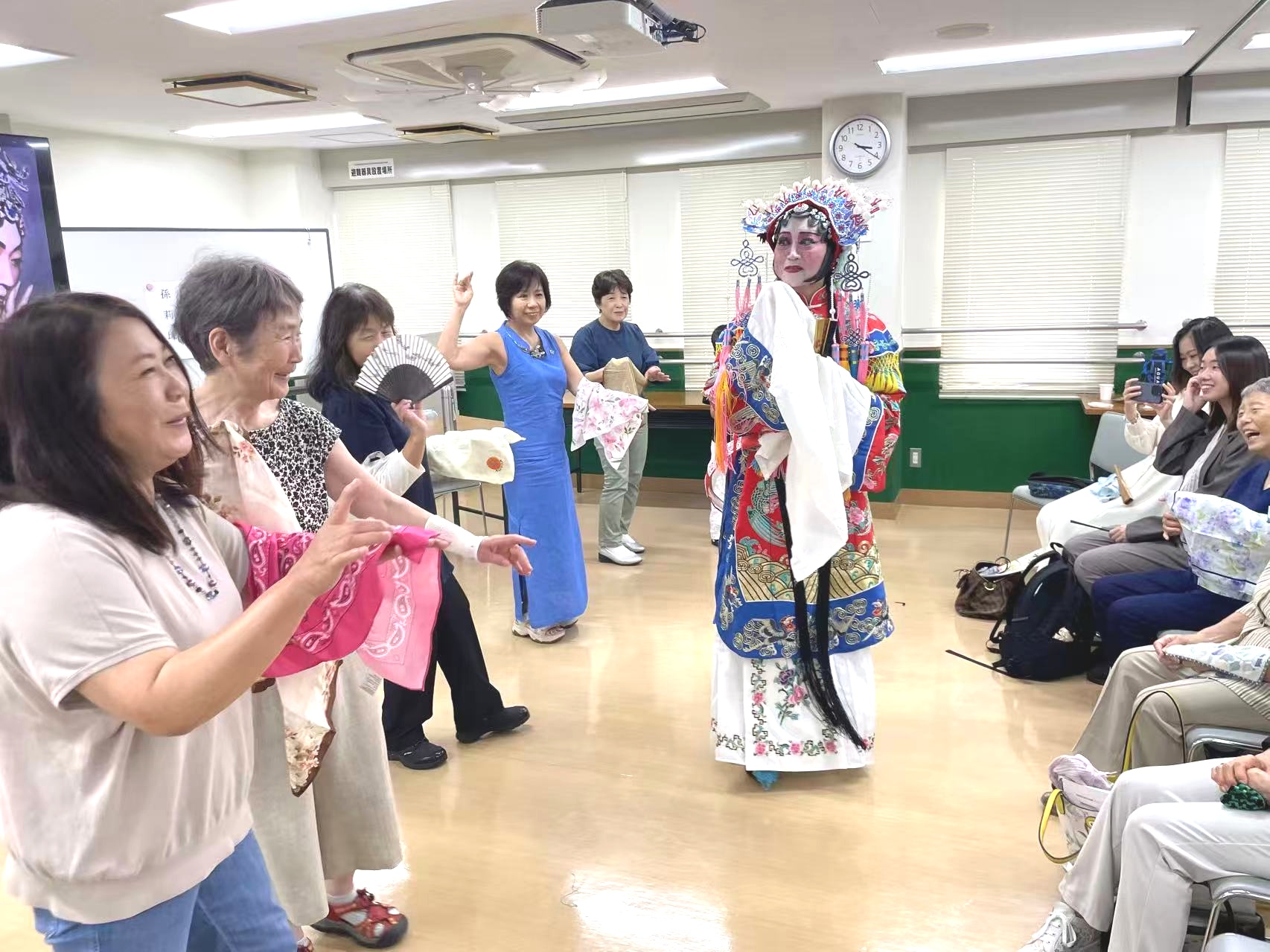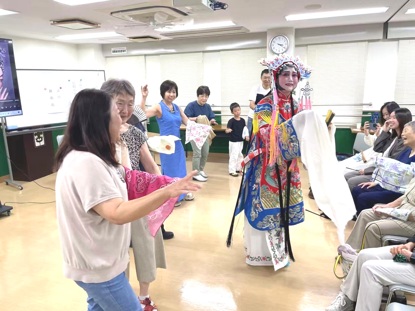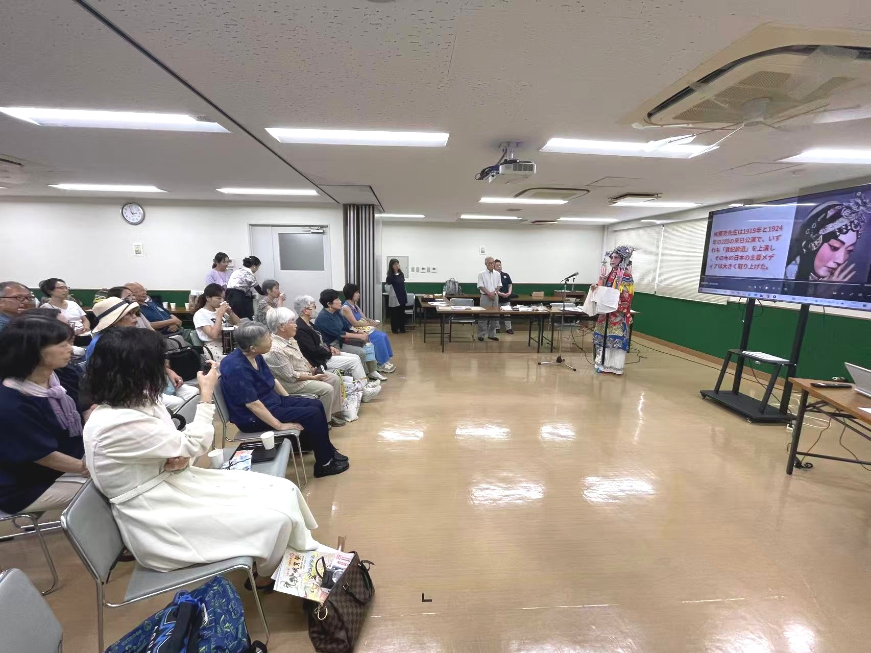 本报讯:9月20日周六下午,大阪府日中友好協会在大阪スカウト会館3階会議室举办了第64回文化茶話会「京劇の世界」,当天,本以京剧为主要内容的“讲座”,“欣”机一转,成了一个突出旨在参与的茶话会,在“吃月饼、喝茉莉茶、看京剧表演、登台体验身段(动作)、轻松互动、观演同框、积极提问、说说感想、有说有笑、气氛轻松环节中圆满完成。