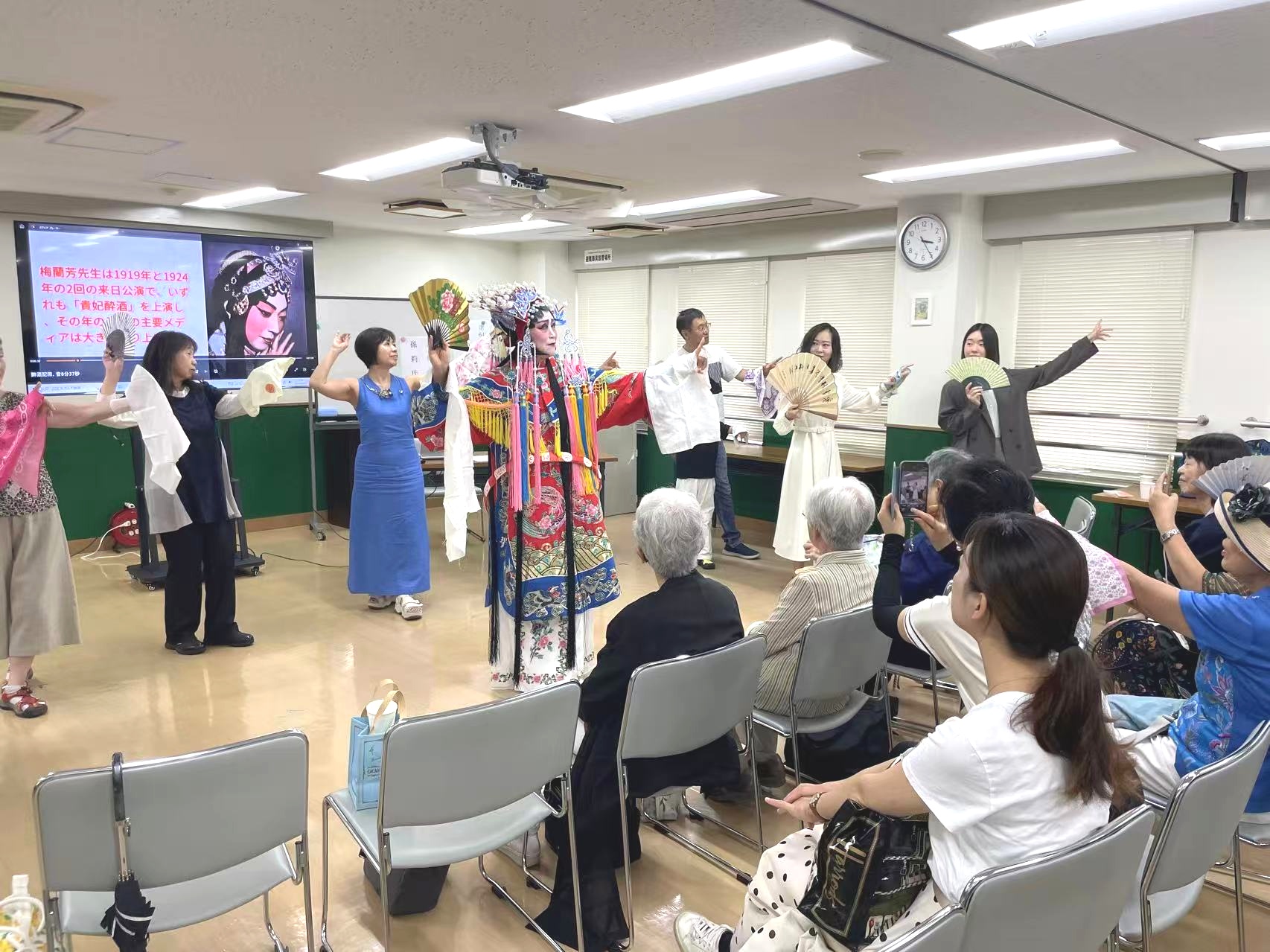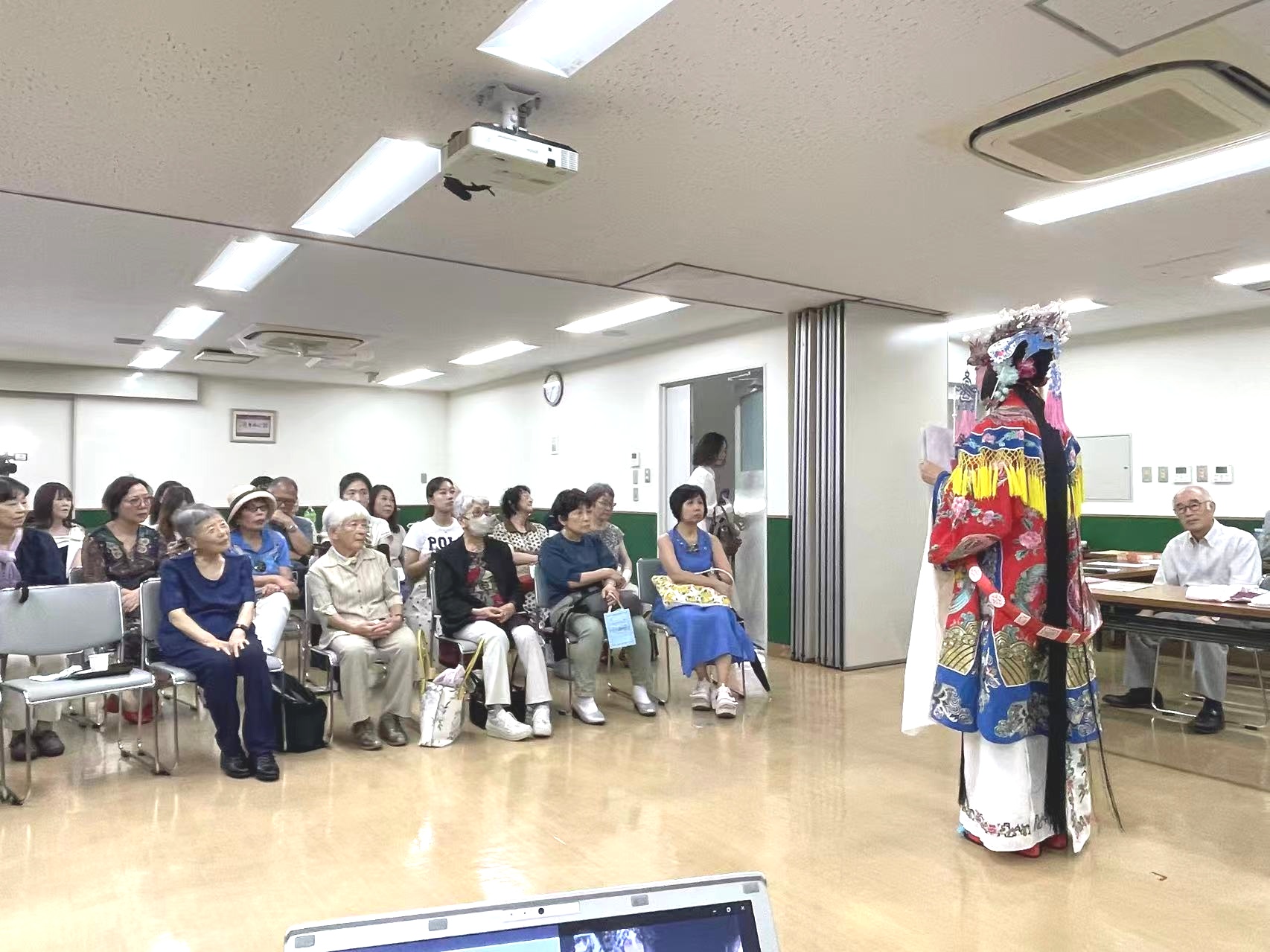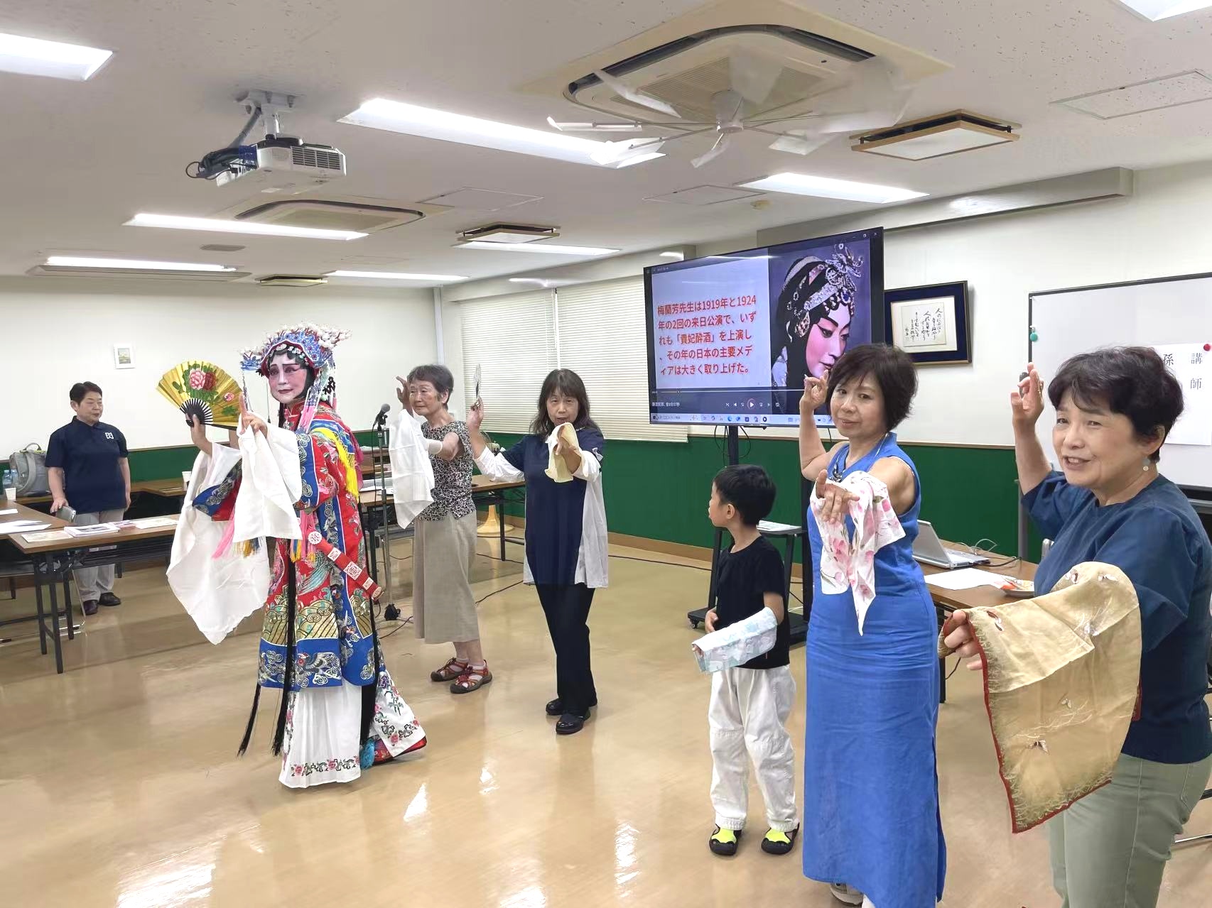 本报讯:9月20日周六下午,大阪府日中友好協会在大阪スカウト会館3階会議室举办了第64回文化茶話会「京劇の世界」,当天,本以京剧为主要内容的“讲座”,“欣”机一转,成了一个突出旨在参与的茶话会,在“吃月饼、喝茉莉茶、看京剧表演、登台体验身段(动作)、轻松互动、观演同框、积极提问、说说感想、有说有笑、气氛轻松环节中圆满完成。