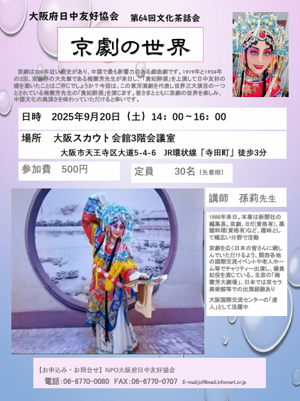 大阪府日中友好協会举办第64回文化茶話会「京劇的世界」