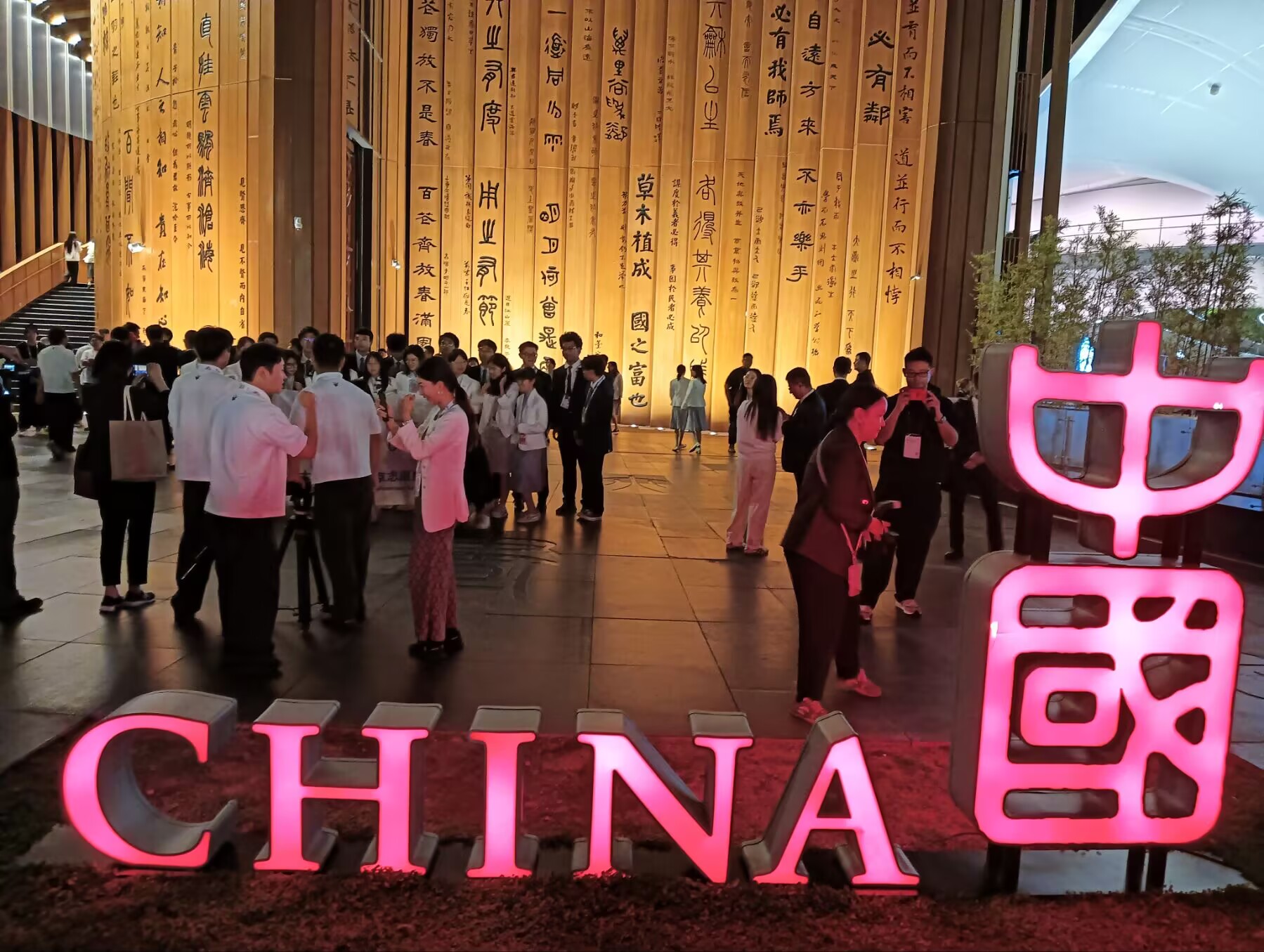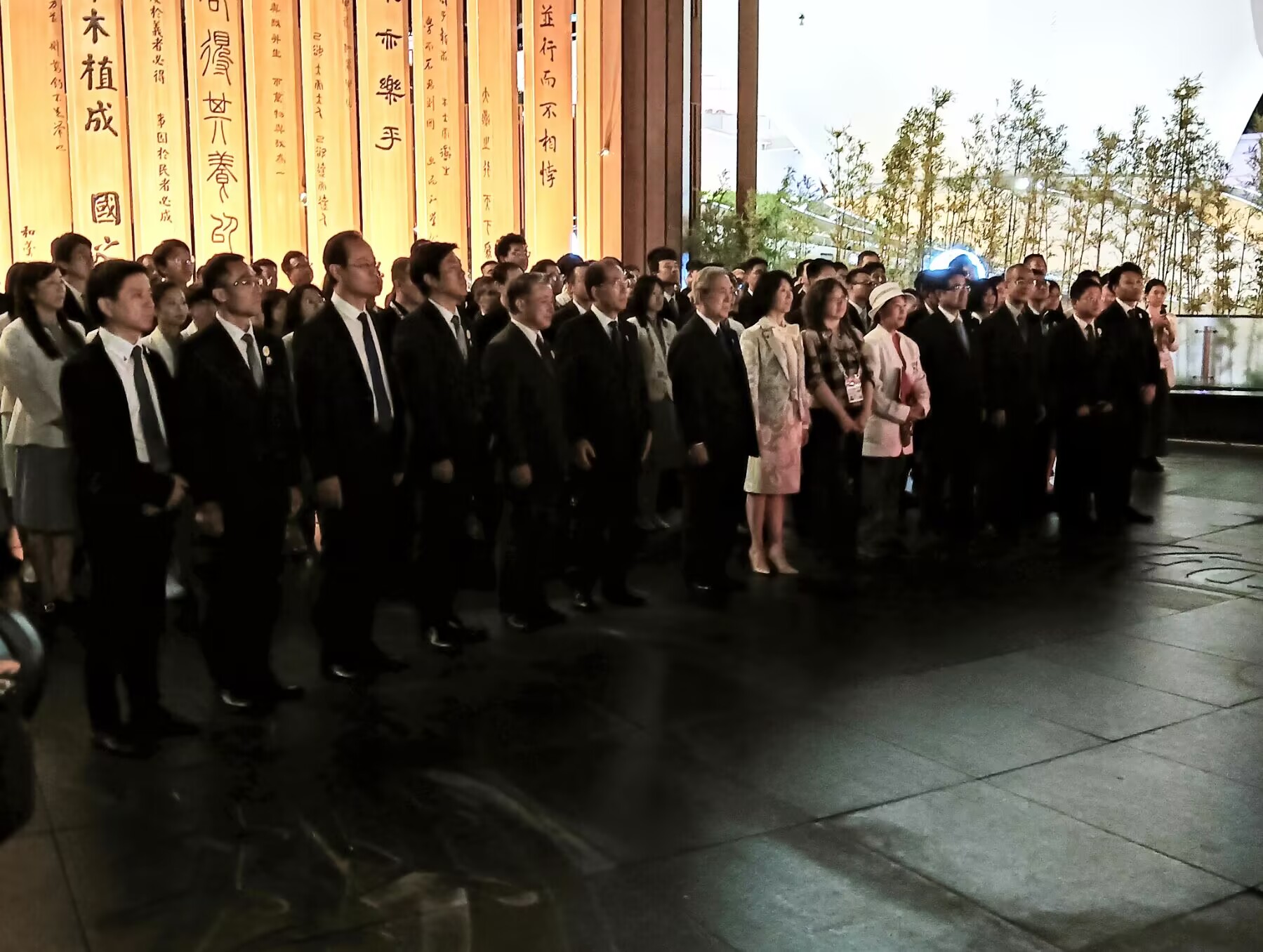 致辞结束后,全体人员在中国馆南广场参加降旗仪式。