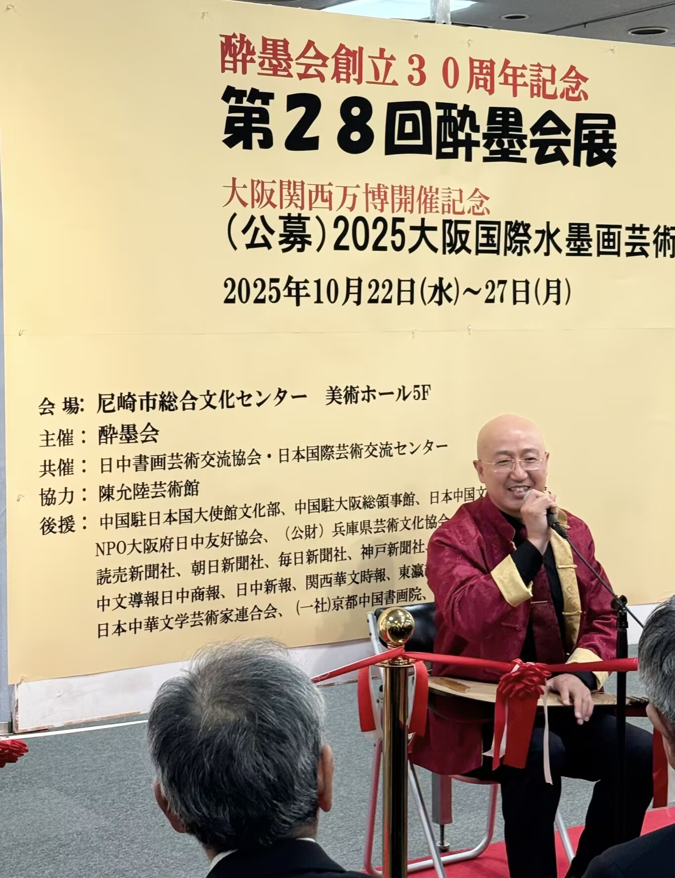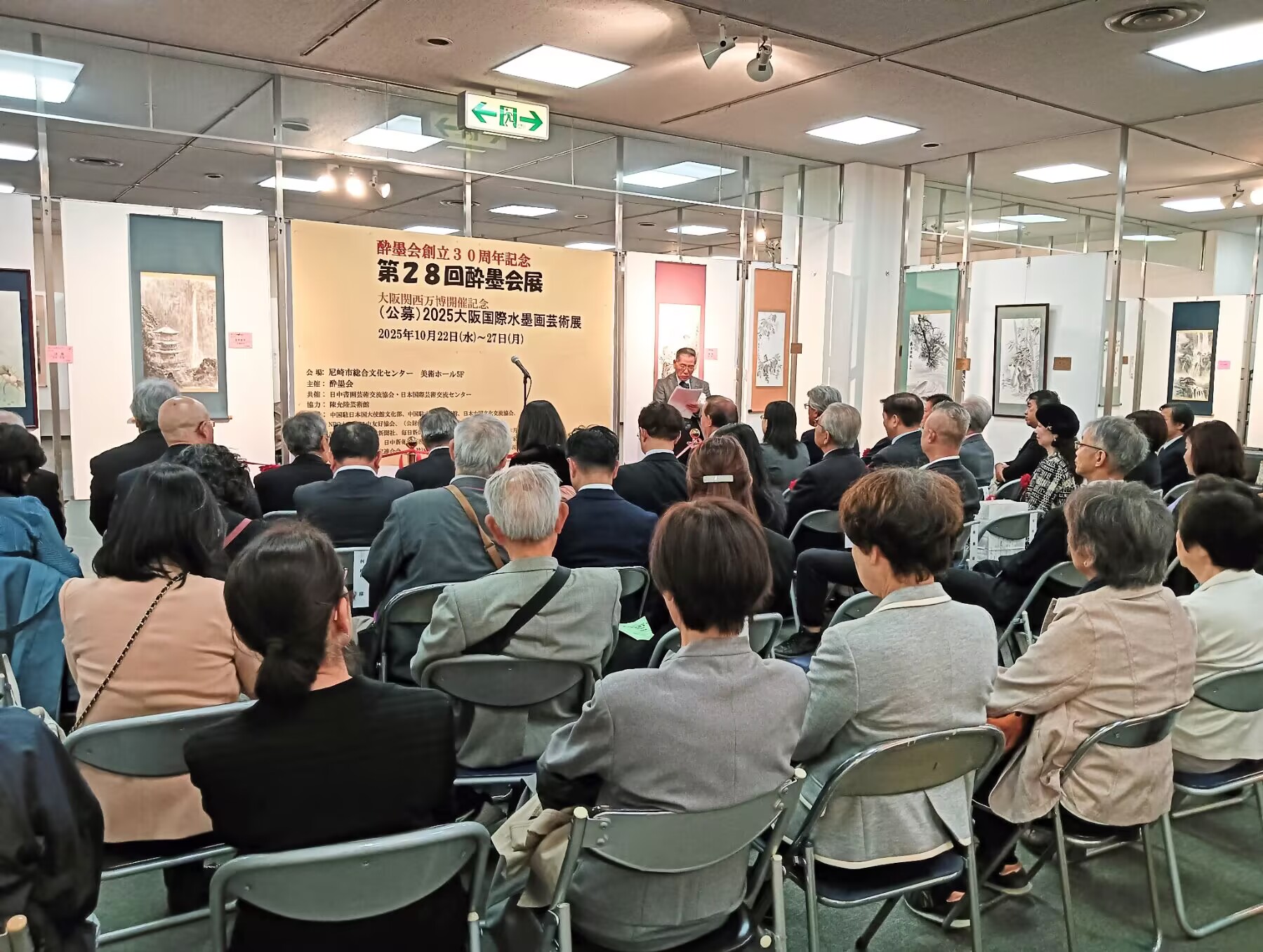 本报22日尼崎消息:「酔墨会創立30周年記念第28回酔墨会展」&「(公募)2025大阪国際水墨画芸術展」開幕式于2025年10月22日上午在尼崎市総合文化中心美術厅开幕,西日本文化艺术界、侨界 、文化社团的代表及书画教室的代表、媒体等60余人参加。