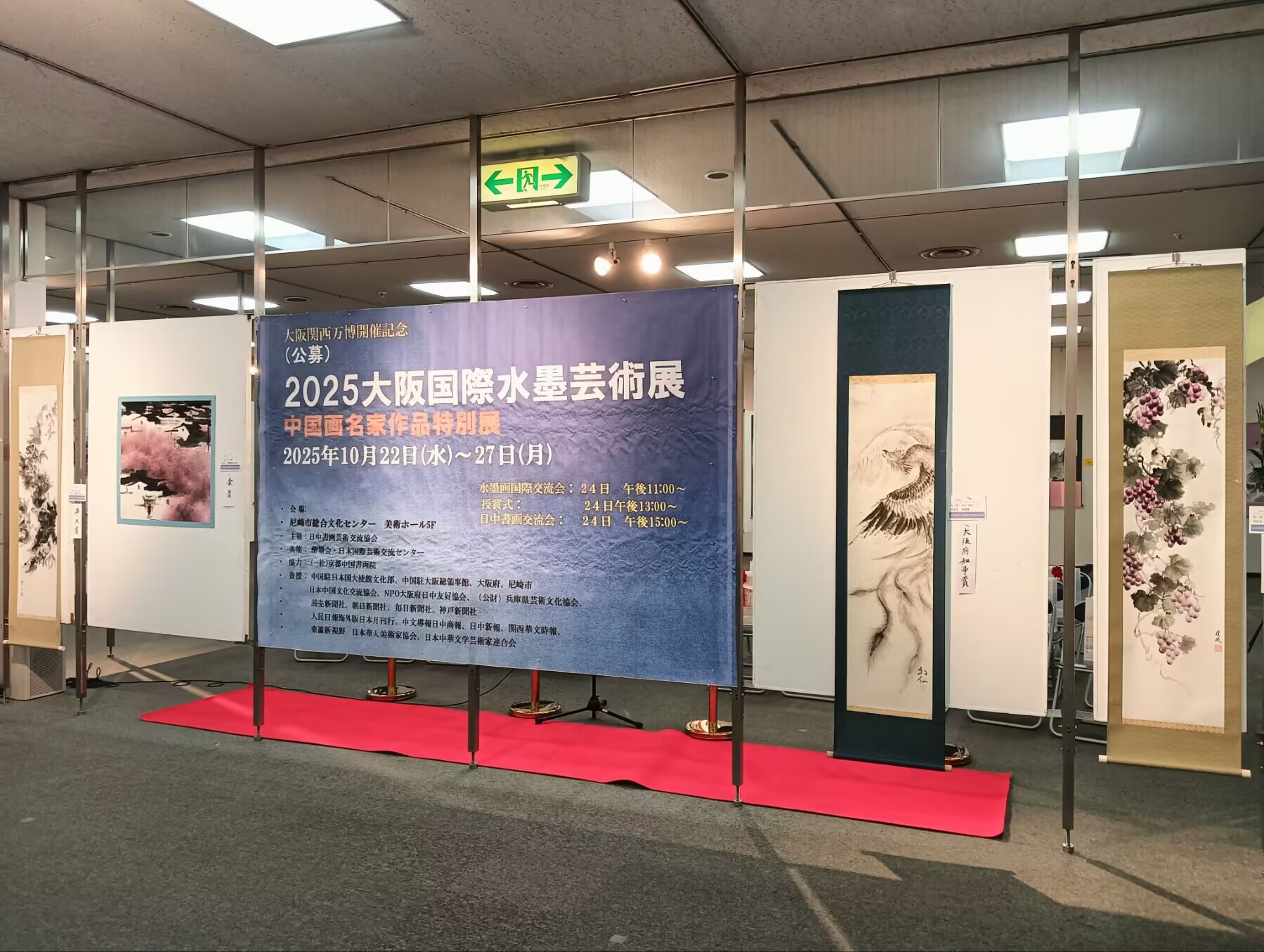 据了解,本次展出的会员作品约80件,同时还举办了2025大阪国际水墨画艺术展,展出了来自国内外的入选获奖作品90件(公开征集),多风格展示了中国水墨文化的内涵。让与会者在金秋的季节里,渡过了身心愉悦的时光。展期于10月27日(星期一)在尼崎市综合文化中心大厅闭幕。