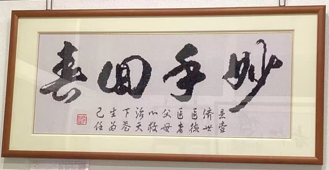 林院长的妈妈搀扶老人去打点滴。我们坐在原处环顾四周,观赏这个镶框的“妙手回春”,笔法遒劲有力,寓意令人向往,抚慰知觉和感官,韵泽意念和心田。