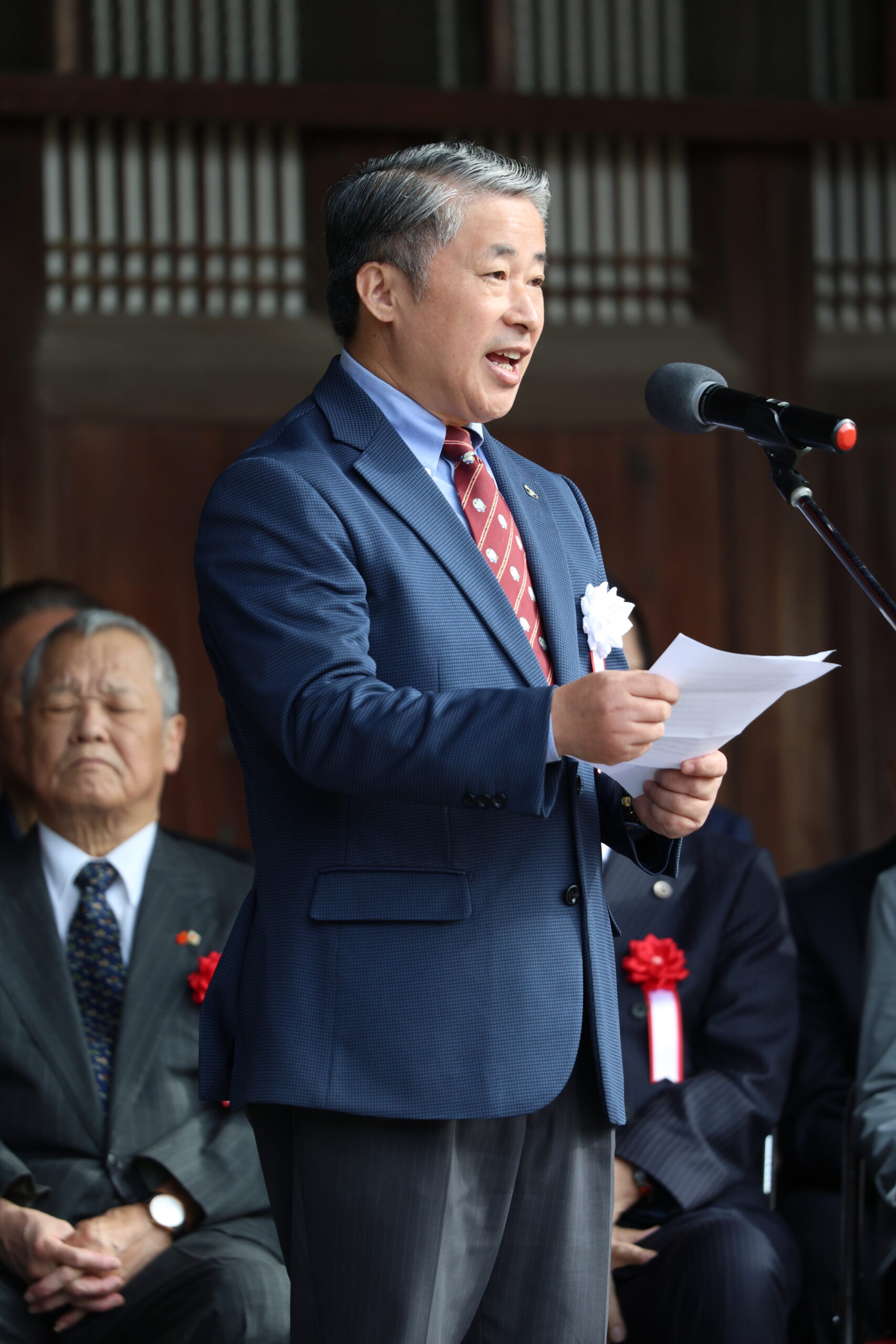葉衛陽会长说:“我们日中文学艺术家联合会,由居住在关西的从事中国文化的音乐家、舞蹈家、画家、书法家、文学家等艺术家组成,积极在各地开展日中文化交流活动。今年第四次也是在与中国渊源深厚的宇治万福寺举办,象征着日中友好的历史渊源和延绵。本次艺术节的举办得到了万福寺、宇治市、中国驻大阪总领事馆、黄檗文化促进会等各界人士的支持与协助,在此表示衷心的感谢。在万福寺西方丈展出中日多位著名僧侣、书法家的90幅作品,今天开演的中日音乐会也带来海内外超过100多名艺术家参与演出的节目。文化艺术超越国界,直接扣观赏者的心灵。希望大家充分欣赏中日两国音乐、书画、茶叶的魅力,为中日两国人民的相互理解、促进民间友好发挥作用。另外,明年在万福寺西方丈展出中日书画作品,将面向世界公募,期待世界五湖四海的艺术家参与这个千年古寺的艺术节”。