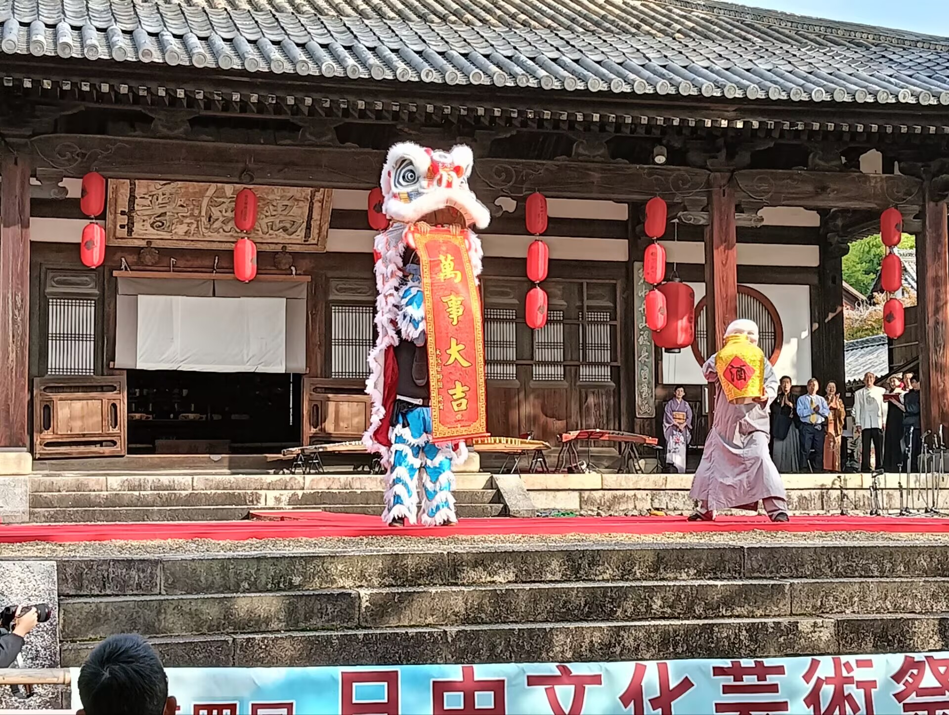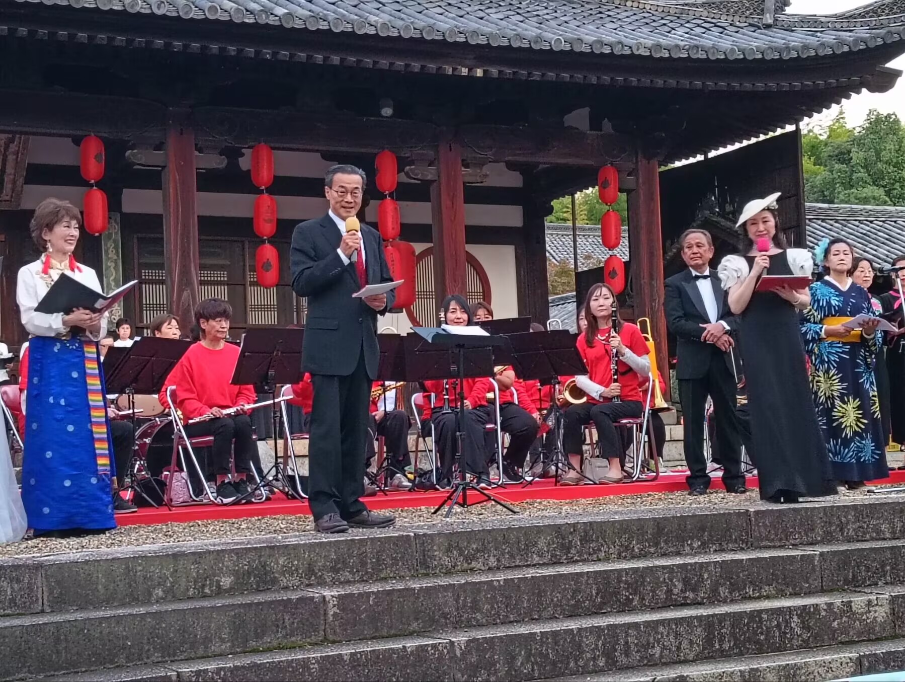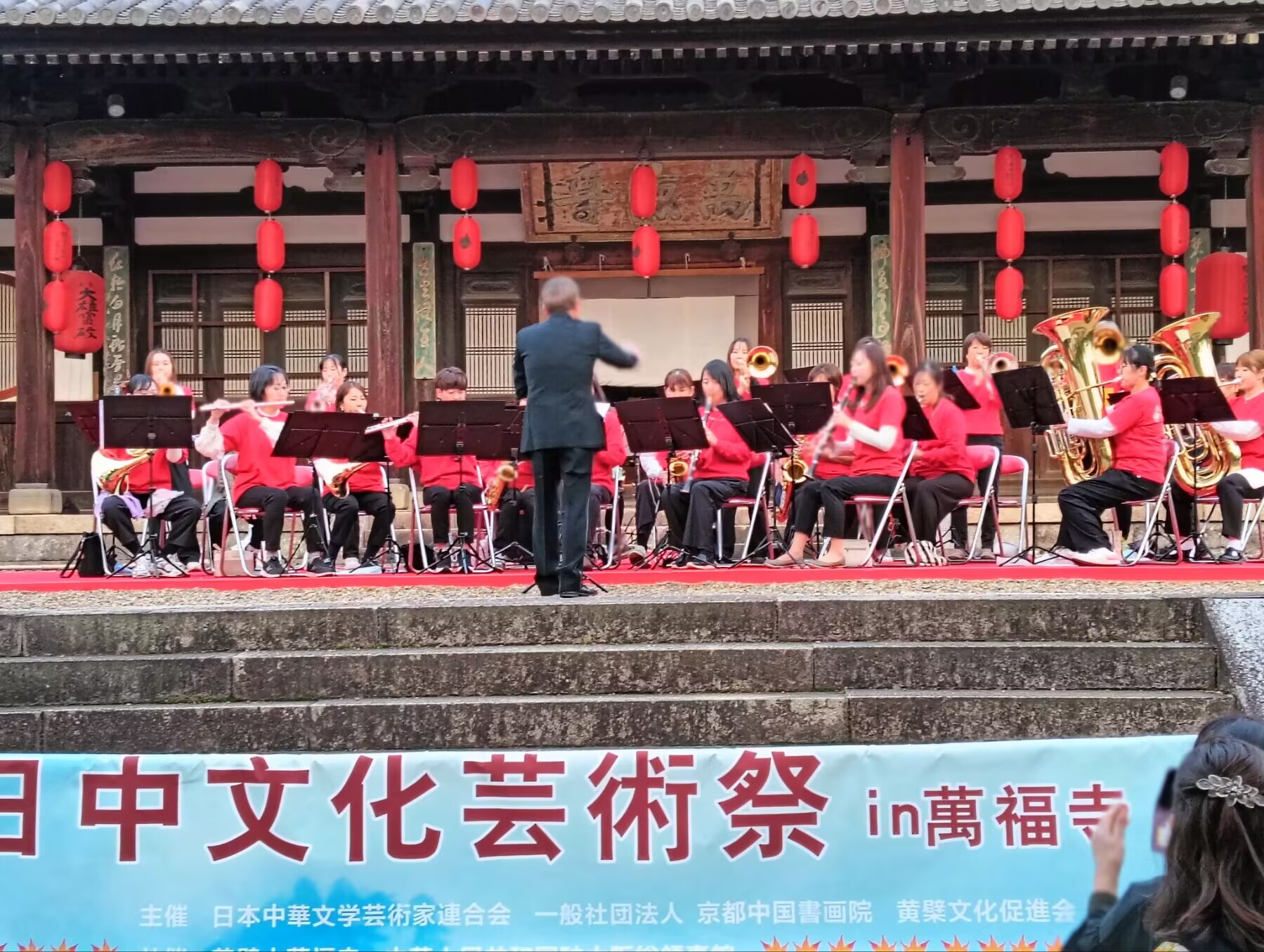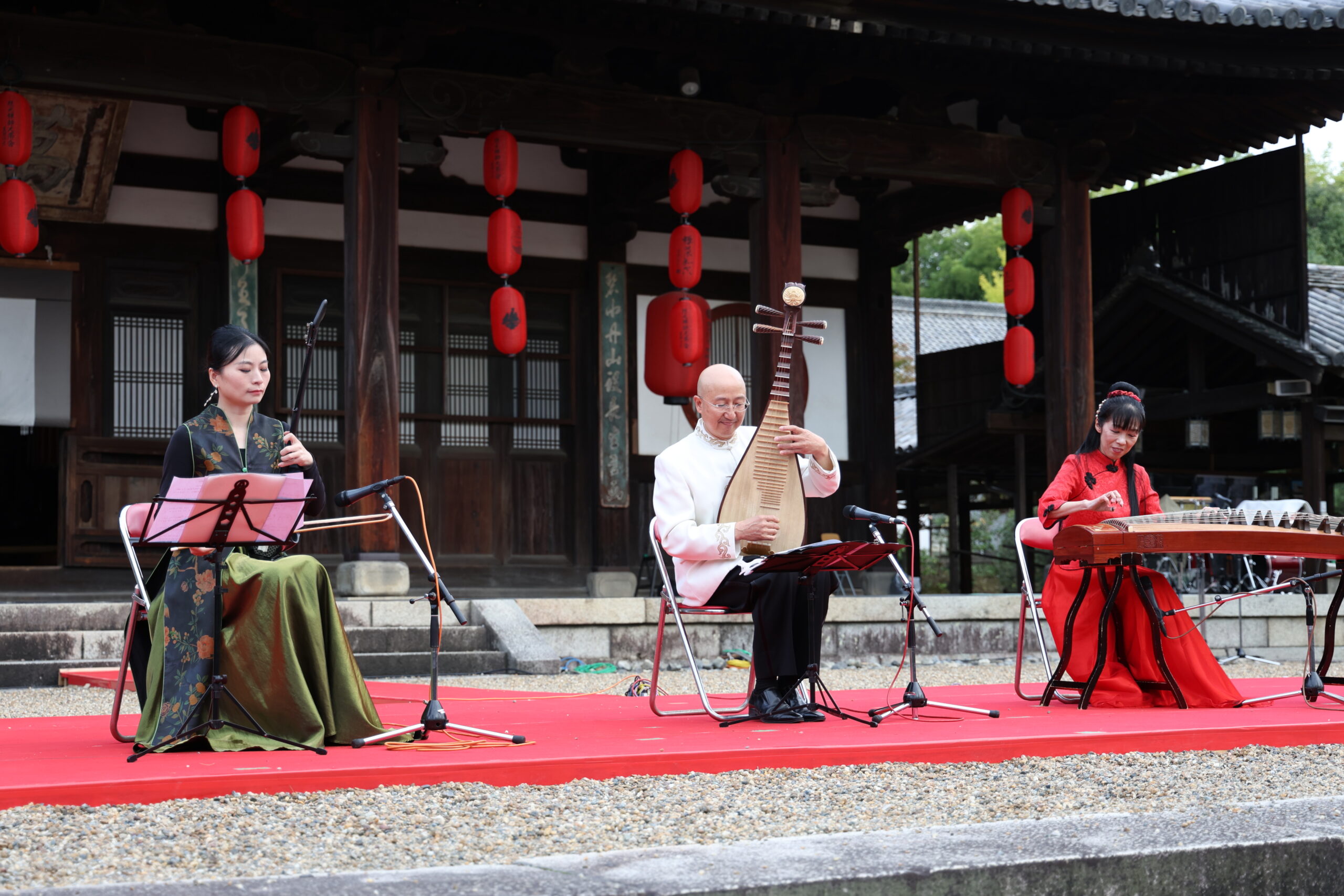 京都华侨总会会长杨正武、一般社团法人黄檗文化促进会会长林文清等嘉宾也先后致辞之后,日中文化艺术节音乐会在万福寺大雄宝殿上月台开演。