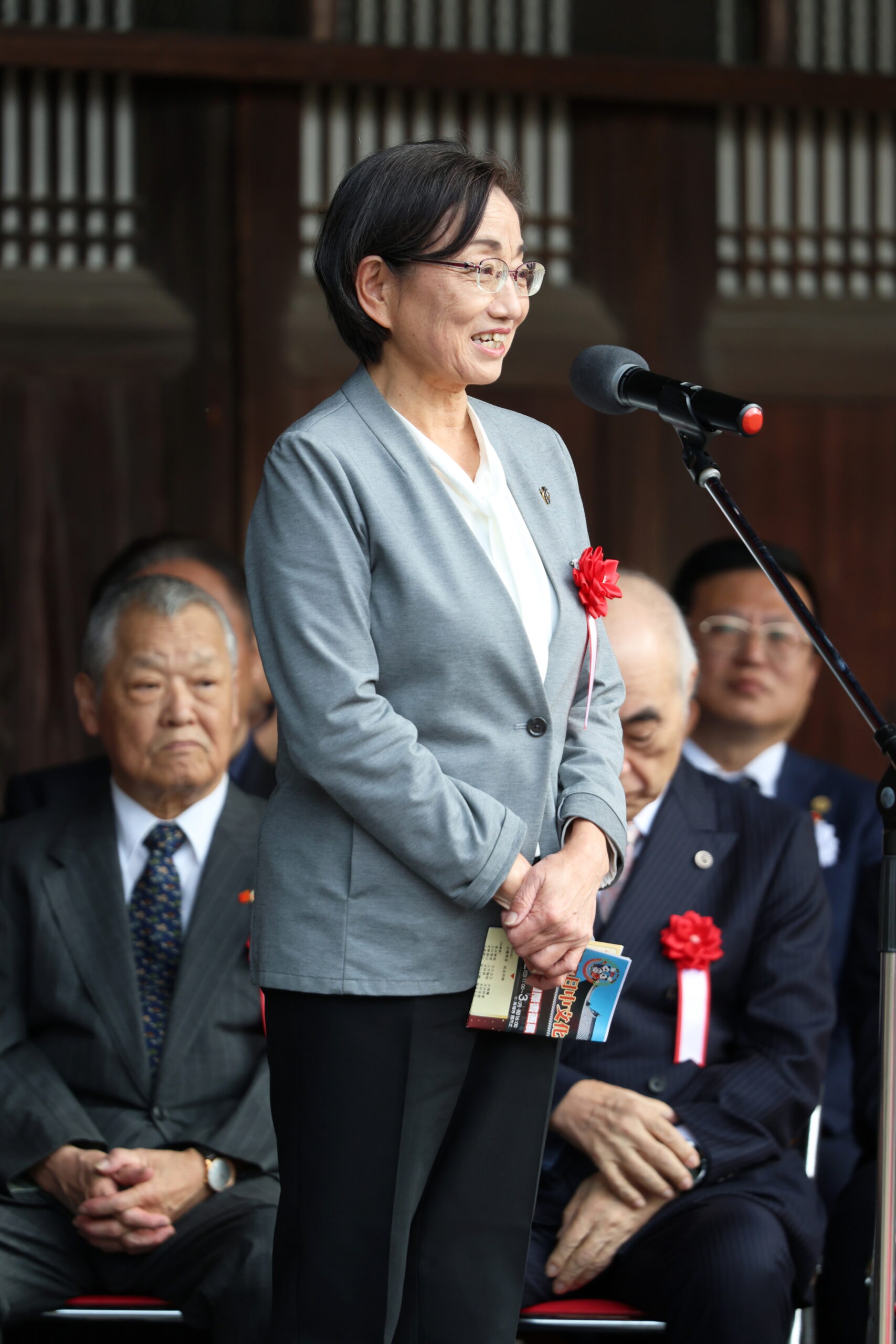 宇治市市长松村淳子女士致辞中说:“黄檗山万福寺、日本中华文学艺术家联合会、黄檗文化促进会为加深中日两国国民的相互理解和促进友好交流已经连续第四次举办活动,对此,为台前幕后的参与者再次表示敬意和感谢,并对日中两国艺术家为今天带来的书画艺术、禅茶寓意、以及表演艺术等以及深远的意义,表示衷心的感谢,期待这样的美好传承和交流一直延续下去。”